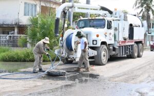 *En respuesta al compromiso con la ciudadanía mantense, mediante acciones permanentes de mantenimiento a la red de drenaje sanitario, realizan esfuerzos y acciones pata hacer
