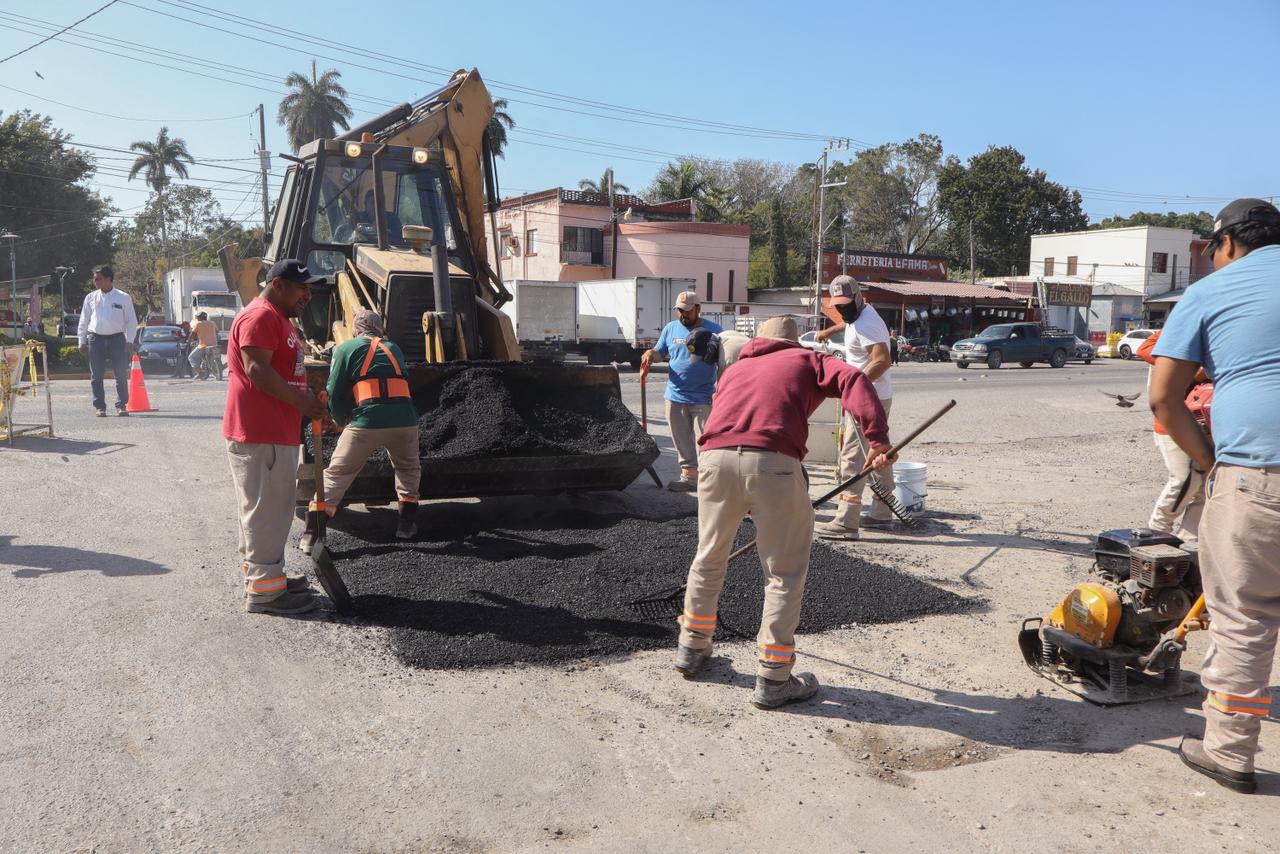 El Gobierno Municipal de El Mante 2024-2027 informa que la Presidenta Municipal, Patty ChÃo, dio inicio a la jornada de bacheo en el Poblado El