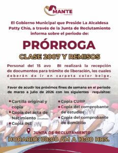 El personal del 15/o Batallón de Infantería estará recibiendo la documentación para el trámite de liberación, la cual deberá presentarse en carpeta color beige.Periodo: Fines