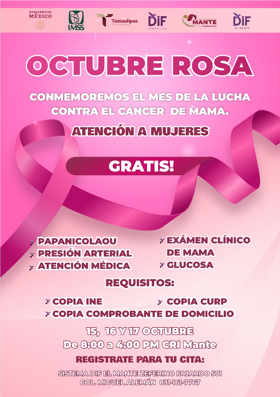 Gobierno Municipal El Mante se suma a la prevención del cáncer de mama