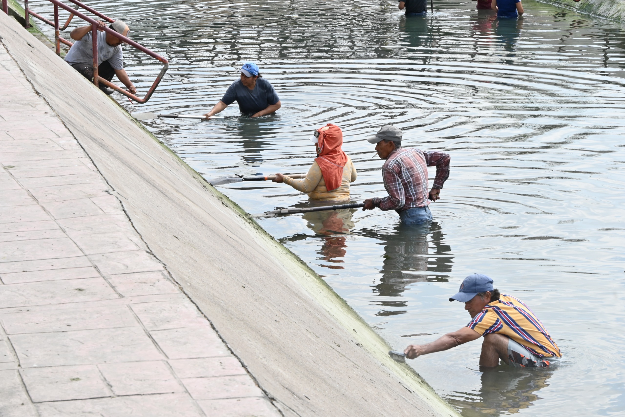 A través de la Dirección de Servicios Públicos, se iniciaron labores con el drenado del canal, así como la limpieza profunda de las paredes de concreto, retirando el moho acumulado por el flujo constante del agua.